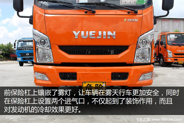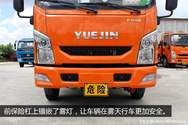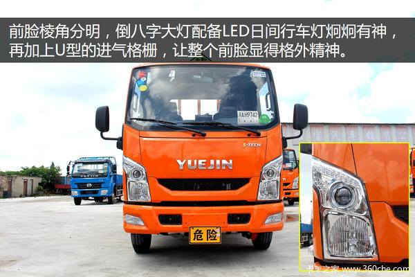 超越C100采用直瀑驾驶室,前脸棱角分明,视野开阔,立式组合大灯配备LED日间行车灯炯炯有神,再加上U型的进气格栅,让整个前脸显得格外精神。