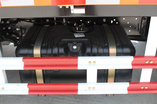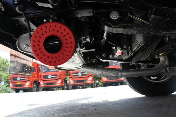该车为危化品车,其排气管通过U型设计跨过大梁,设置在前保险杠底下。