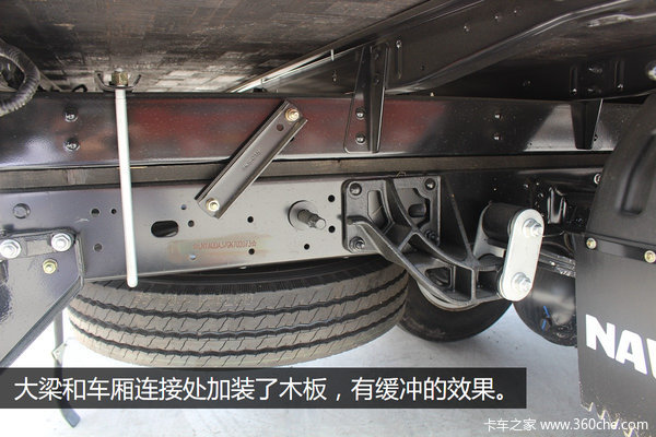 该车在大梁和车厢连接处加装了木板,起到缓冲减震的作用。