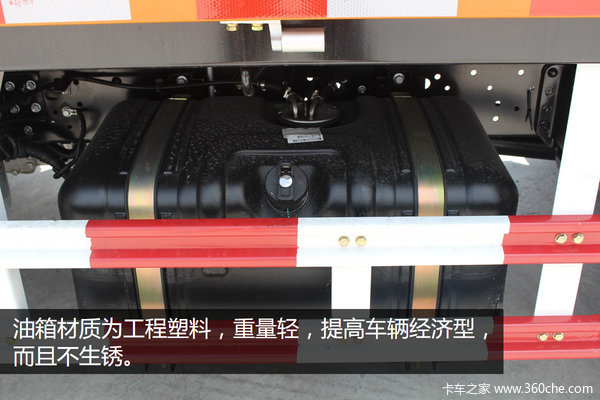 油箱材质为工程塑料,符合轻量化设计要求,而且与铁皮油箱相比,有不生锈的优点。