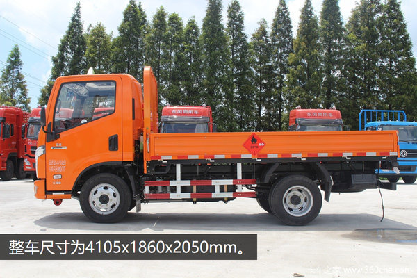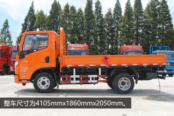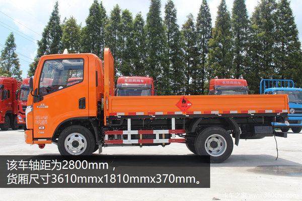 该车轴距为2800mm,整车尺寸5450mmx1940mmx2310mm,货厢尺寸3610mmx1810mmx370mm。