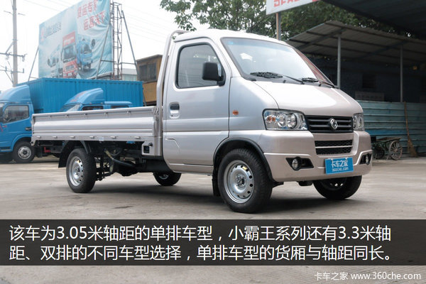 东风小霸王W系列分别有3.05米轴距、3.3米轴距以及单双排的不同车型,想货厢更大可选择3.3米轴距的单排车型,详细可看另一篇文章:《小排量能有大货厢 东风小霸王W单排微卡》。