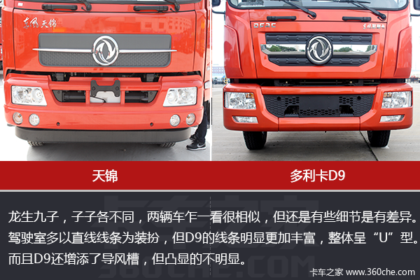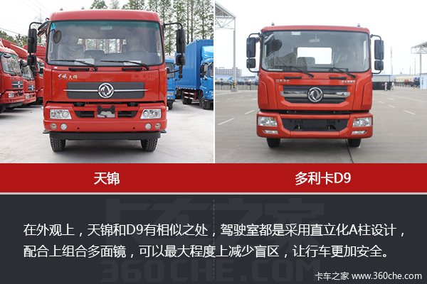 来卡车之家App【卡车之家 原创】6.8米货箱的载货车,凭借着用途的多样性被卡友称为“万能车”。而东风天锦系列一直在中卡领域保持着领先优势,但面临江淮、解放等产品的冲击,东风在完善天锦系列的同时,也丰富了多利卡系列,推出了D9,作为兄弟产品,天锦和D9有什么差异吗?