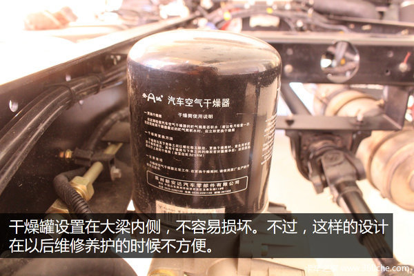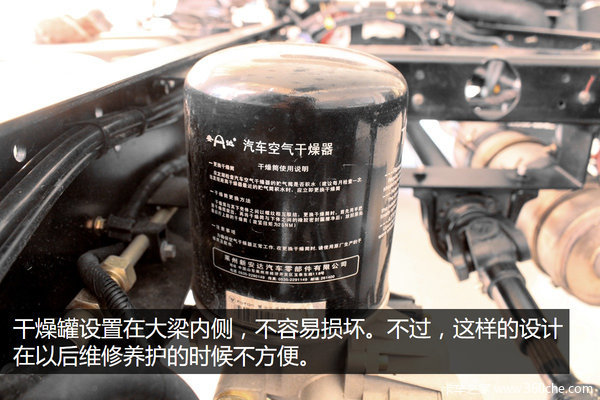 干燥罐设置在大梁内侧,不容易损坏。不过,这样的设计在以后维修养护的时候不方便。