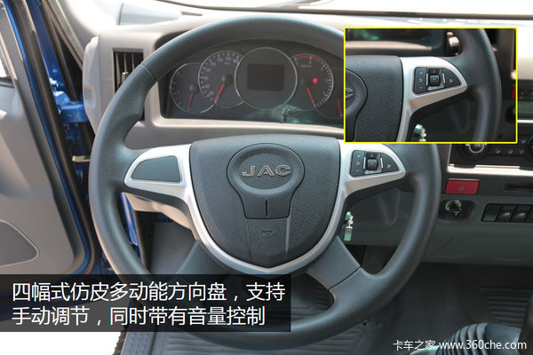 该车传承家族式前脸,独具自家风格的大灯组搭配H型进气格栅,跑在路上的时候轻易就能让人分辨出这是一台产自江淮的商用车。