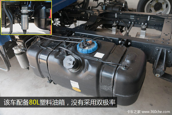 配备80L塑料油箱,容积可观,不过没有采用双极滤。由于本次拍摄车辆油箱被防护栏阻挡无法看清,所以换了一辆继续拍摄。(此图为同款同系列无上装车辆拍摄)