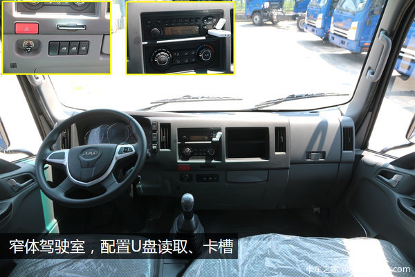 该车采用帅铃窄体驾驶室,功能体验让人满意。笔者自带的U盘完全匹配,经测试音乐播放清晰,忙绿工作之余可以让身心得到不错的放松。空调旋钮阻尼感适中,旋钮也为盲操作增加了可能性。卡槽可以放置比较常使用的卡片。