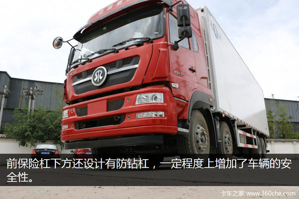 来卡车之家App【卡车之家 原创】日前,卡车之家评测团队来到了北京天成华瑞汽车销售有限公司,在这里我们见到了一辆重汽斯太尔8×4冷链运输车,该车采用了斯太尔M5G 340底盘。这辆车不仅选装多项配置,最特别之处在于它还是北京首辆斯太尔M5G冷链运输车。