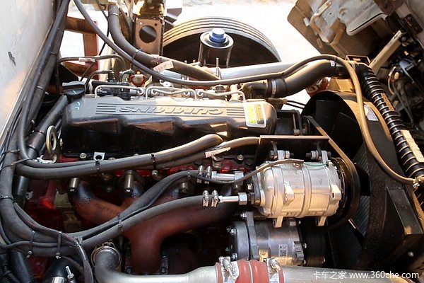前面有提到这台统帅搭载福康3.8升发动机,具体型号为:ISF3.8s5141,通过SCR后处理技术满足国五排放,最大可输出141马力,动力输出不俗。在发动机右上方,可以看到冷机的压缩机。康明斯发动机模块化设计很成熟,最长保养周期可达到20000公里,这对于冷藏车也是一个优势,因为冷藏运输对出勤率要求很高,要的就是车辆性能的稳定性。