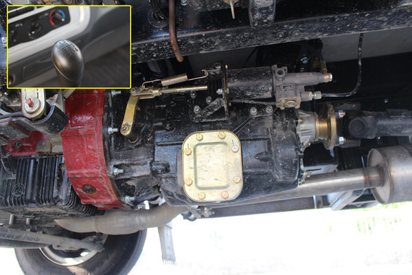 该车配有定速巡航,目前在国内轻卡圈,还属于高端车型才有的配置,控制开关位于仪表盘左下方不是很顺手,并且开关松散,试驾时就不小心按的陷到里面去了,然后轻而易举的又把整个开关模块取下来,调整并复位。