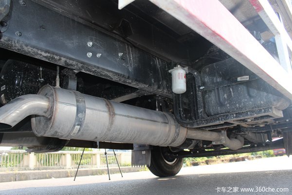 该车满足国五排放,后处理以及消声器为一体化设计,这种方式在解放轻卡上比较常见,一体化看起来也更简洁。