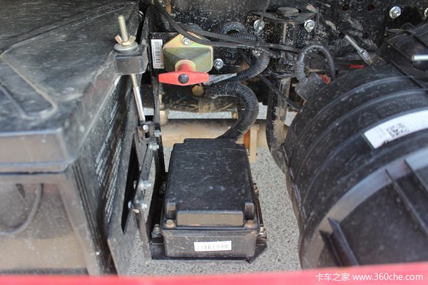 该车采用大容量双电池组,对于冷藏车来说充足的储备电量,还是很有必要的,冷机和风机都需要大量的电力支撑。电盒以及电源总闸都布置在电池旁边,集中式布置,便于检修作业。
