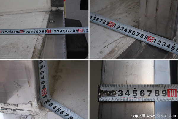 该车底盘公告支持的货厢内部尺寸最大可达4100x2150x2150mm,容积达到19个立方。但该车货厢内部尺寸实际为4100x1960x1820mm,货厢箱体厚度为78mm,货厢内部蒙皮材质都为玻璃钢,底板也是,在实际使用过程中,底板的耐磨强度也将会是硬伤。