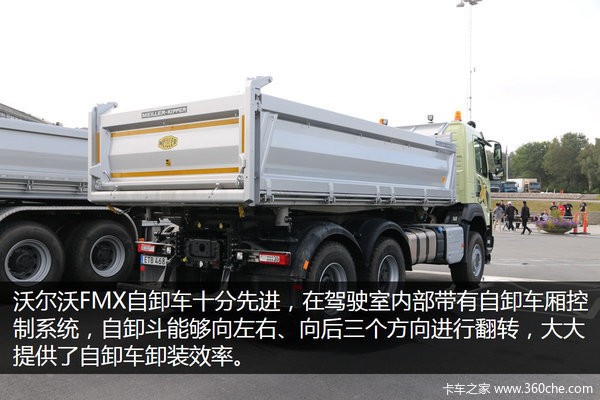 早在2010年慕尼黑宝马展上沃尔沃就推出了FMX,在2013年的慕尼黑宝马展上又推出新改款的FMX。这款在瑞典实拍的沃尔沃FMX 6X6自卸车,定位于工程运输市场,该车自卸车斗能够多向调节,装卸货物的效率大大提升。(文/丁美健 图/郝建华)