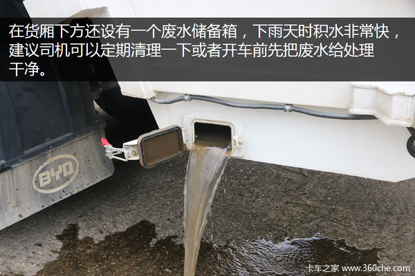 上装前部分的各个开关同样为装卸垃圾控制开关,与后部份的控制开关功能基本一样。可能卡友有些疑惑,设两个功能一样控制开关是为什么?据工作人员介绍,这是为了避免电动出现故障时无法进行装卸垃圾操作,而前部的控制开关则为一个备用控制开关。两个控制开关功能一样,只不过工作原理有所不同,一个靠电控制、另一个则靠液压系统控制。