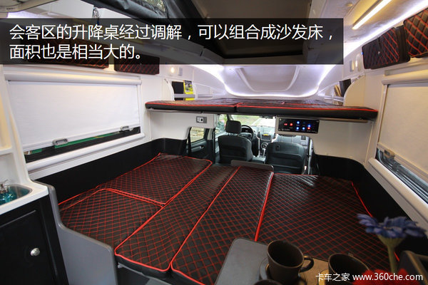双横臂螺旋独立悬架保证了驾驶过程中驾驶室内的舒适性,后钢板弹簧非独立悬架给房车的生活区一个良好的支撑保护。