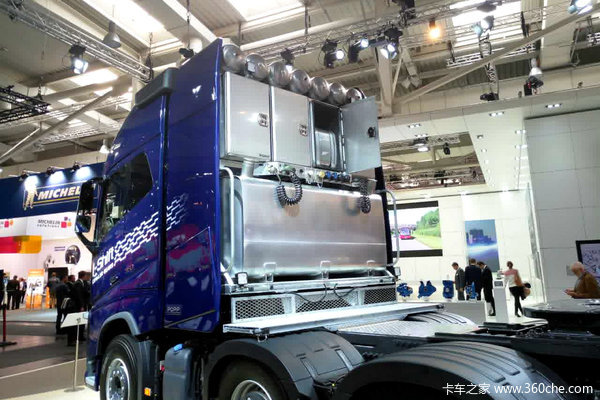 来卡车之家App【卡车之家 原创】2016年汉诺威国际商用车展9月21日在德国汉诺威如期开幕,沃尔沃本次车展没有全新产品展出,却带来了沃尔沃优化升级的车型,卡车之家采访团队就在沃尔沃展台截获一台FH大件牵引车。