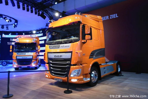 来卡车之家App【卡车之家 原创】在今年的汉诺威国际商用车展上,来自橙色国度荷兰的卡车品牌达夫(DAF)也带来XF 4x2牵引车型,全新达夫XF于2012年的汉诺威车展上亮相,已经走过了四年时间,新达夫XF相比较老款达夫XF更加时尚和动感,更具有流线型。