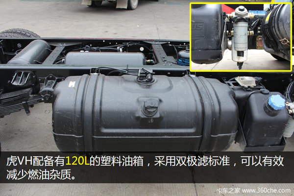 虎VH配备有120L的塑料油箱,采用双极滤标准,可以有效减少燃油杂质。