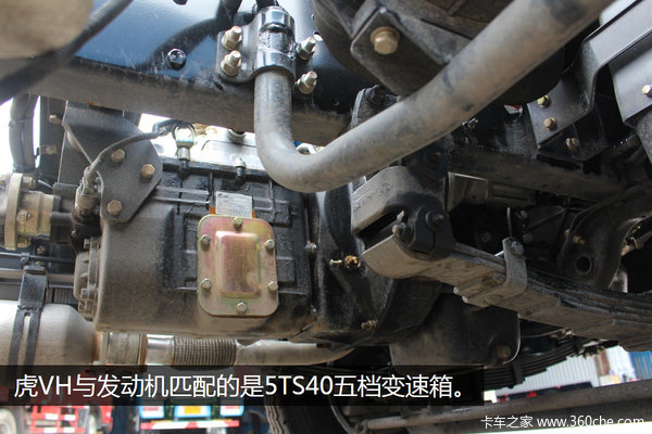 虎VH前桥板簧数:7片,后桥:10+3片,速比:4.875。前后桥均采用气刹制动、配备ABS、断气刹,是当前轻卡比较主流的配置。