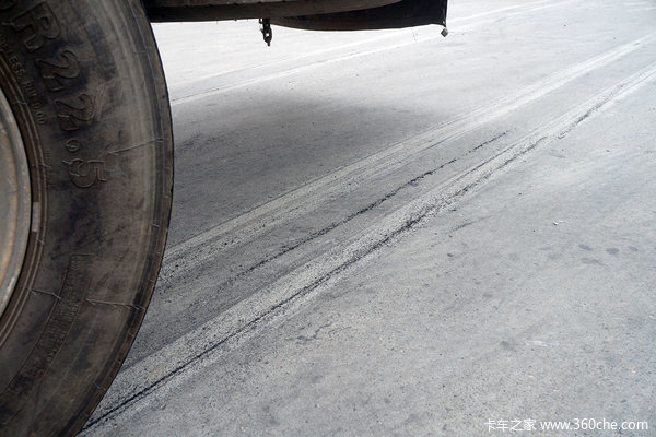 地上的“黑印”就是轮胎在与地面直接摩擦之后的产物,虽然测试时都将刹车踩到底,但是安装ABS后的挂车刹车痕迹要轻很多,并没有明显的“黑印”。下面就让我们近距离看看这个“黑印”到底是什么。