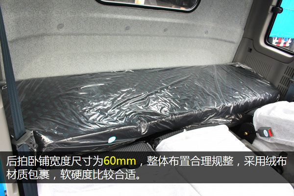 这台车为排半驾驶室,宽度尺寸为1995mm,限载3人。驾驶室车顶和座椅均采用绒布材料,既美观也透气。