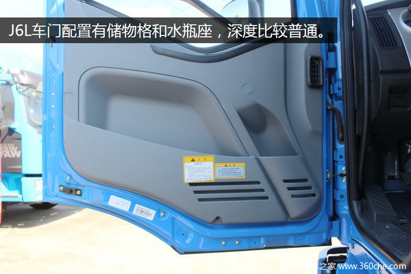 J6L驾驶室以灰色为主,宽度尺寸为1960mm,采用的是解放排半驾驶室,主驾为机械减震座椅,实际乘坐感受比较舒适,在一定程度上可以缓解驾驶员疲劳感。