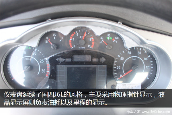 仪表盘延续了上一代J6L的风格,主要信息均采用指针显示,液晶显示屏则负责油耗以及里程的显示,符合大多数人使用习惯。