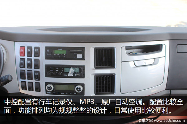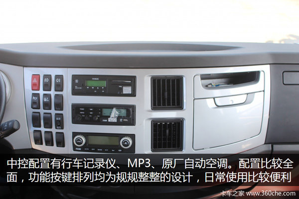 中控配置有行车记录仪、MP3、原厂自动空调。配置比较丰富,功能按键排列规整,日常使用比较便利。