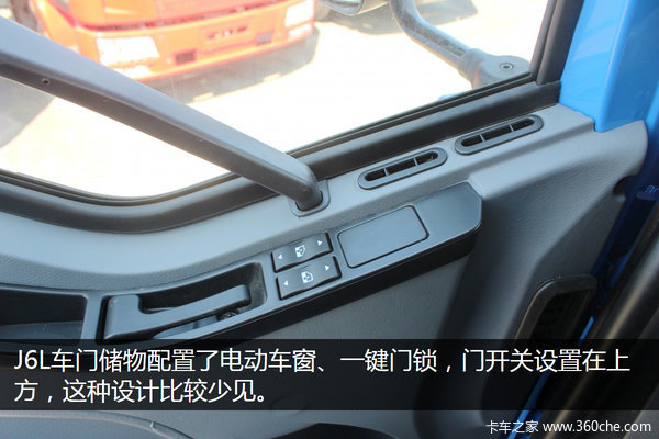 J6L车门储物配置了电动车窗、一键门锁,配置比较主流。门开关也设置在门板上方,这种设计比较少见,第一次使用时感觉比较别扭,习惯后应该有一定便利性。