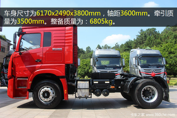 车身尺寸为6170x2490x3800mm,轴距3600mm。牵引质量为345000kg。整备质量为6805kg。
