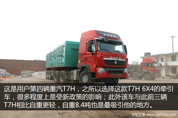 来卡车之家App【卡车之家 原创】新GB1589对于六轴车总重的规定,对于运煤车市场产生了不小的影响。中国重汽针对于运煤车市场,在前不久推出了自重更轻的6X4 T7H牵引车,采用了大马力大扭矩发动机+小速比驱动桥,高地板高顶驾驶室,车身多处轻量化设计,该车自重可达8.3吨-8.5吨,选配铝合金车轮、瀚瑞森悬架,不带备胎最低可到8.0吨,是拉煤用户的不错之选。