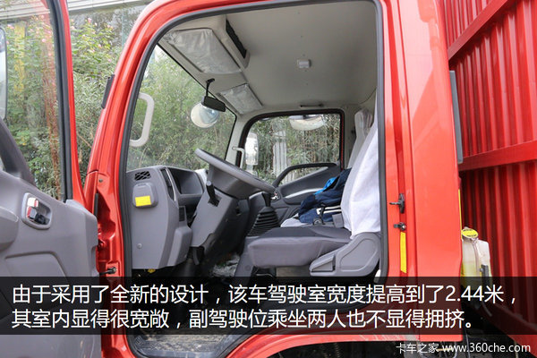 除了驾驶室的外观大变样之外,这款车的驾驶室宽度增加到了2050mm,所以其内部空间显得宽敞了不少,副驾驶乘坐两人也不显得拥挤。
