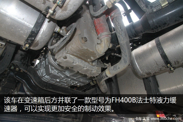 这台车装配的法士特液力缓速器仅为选装产品。对于经常跑西南地区的用户来说,液力缓速器基本上可以完美的取代淋水器,在长下坡时可长时间实现无磨损制动。