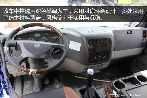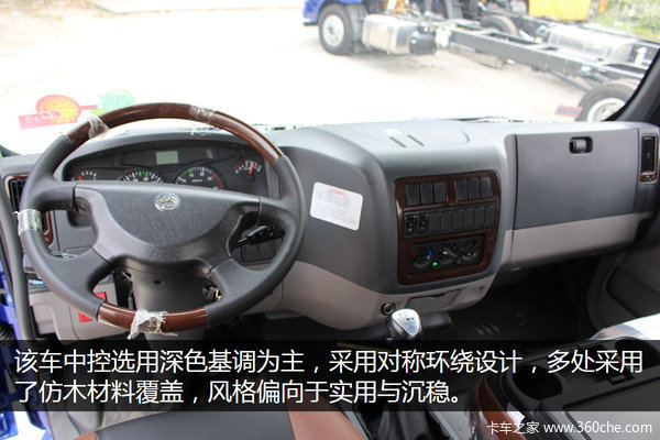 乘龙M3中控选用深色基调为主打,采用对称环绕造型设计,多处选用了仿木材料覆盖,风格偏向于实用和沉稳。方向盘为真皮仿木材质,配置厚道,握持感受更加舒适。