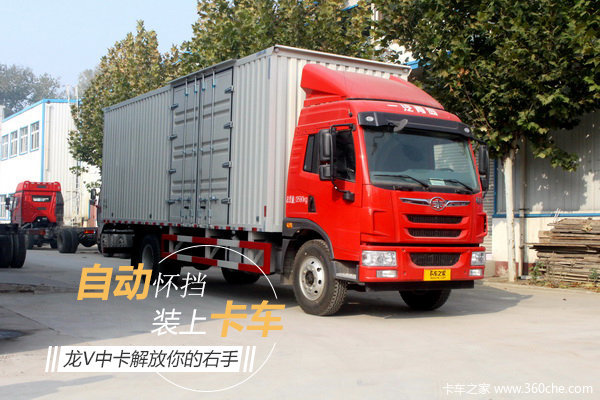 这款龙V中卡外观与普通龙V并无不同,同样是7.7米厢长的封闭厢式货车,主要是用于运输快递、成品烟等轻抛货物,不过它的变速箱绝对是亮点,现在就来一起看看这辆青岛解放龙V中卡。