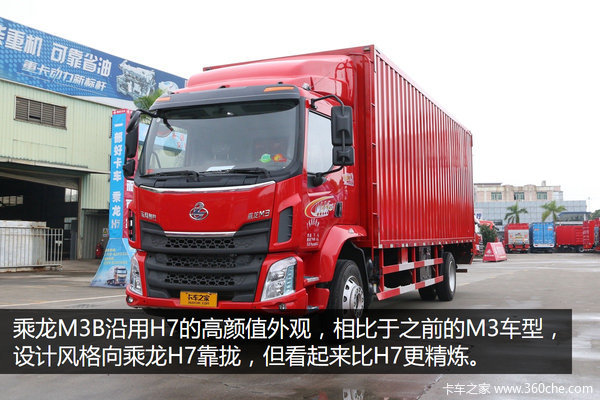 来卡车之家App【卡车之家 原创】继东风柳汽在推出了号称最美长头T7后,在今年的北京车展上,东风柳汽又带来了两款全新中卡平台产品,一款是乘龙M3B 4x2载货车,另一款则是M3B 6x2的自卸车,这两款车同样被外界称为最美中卡,这两款车的展出为柳汽展台吸引了不少的人气。时隔数月,最美中卡现车已经到达了东莞经销商处,并开始在市场进行小规模试售,目前这款车刚到店就已经被M3的老用户买了。趁着用户还没提车,笔者有幸近距离了解这款号称最美中卡的M3B 4x2车型。
