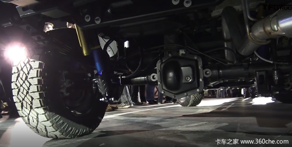 在首次展出的库罗德ZR2上我们发现它延续了雪佛兰皮卡一向的备胎直接置放于后部货厢之上的习惯,轮胎为全地形轮胎,使用31英尺固特异Duratrac越野轮胎,据了解,这款轮胎的价格也不便宜。当然,车底也提供了安放备胎的位置,如果你觉得需要的话,也可以额外购买一个备胎安置于车底位置。