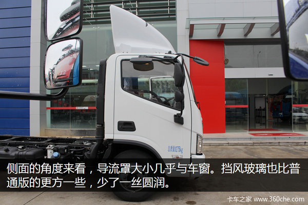 实际售卖的车辆和展示车在外形和尺寸上并没有差别,大尺寸的导流罩、凌厉的前脸设计让它在众多轻卡中显得独树一帜,具有极高的辨识度。