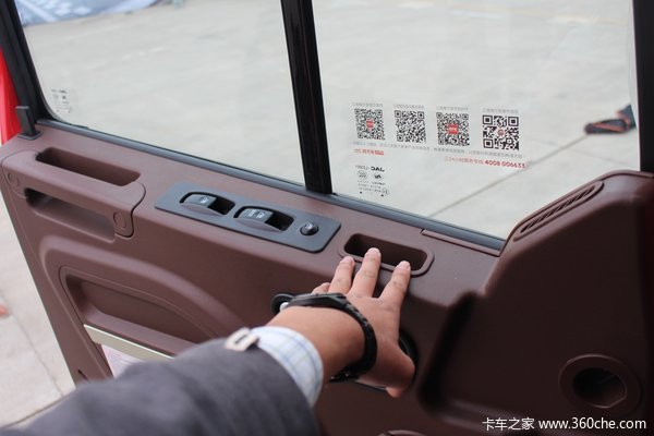 看完了外部,我们在来看驾驶室内部的细节。打开车门,首先看到两级蹬车梯,对于这样一台高大的车辆来说,两级蹬车梯说实在有点不方便。不过据了解,K5w已经有三级蹬车梯车型,不过目前还没有推,后期江淮表示会将三级蹬车梯版本车型推出。