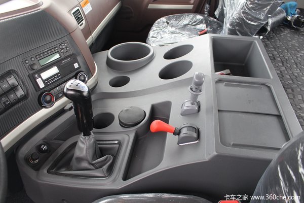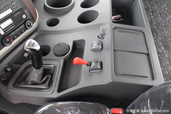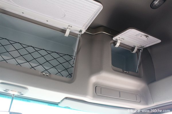 说到储物空间,就不得不说超高顶的驾驶室,驾驶室内部净高达到1.96米,在这样的条件下,前部的三个分区储物箱容积都非常的大,并且中间的储物箱还有防护装置,防止什物跌落,对行车安全造成影响。