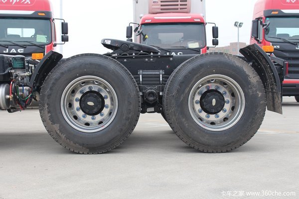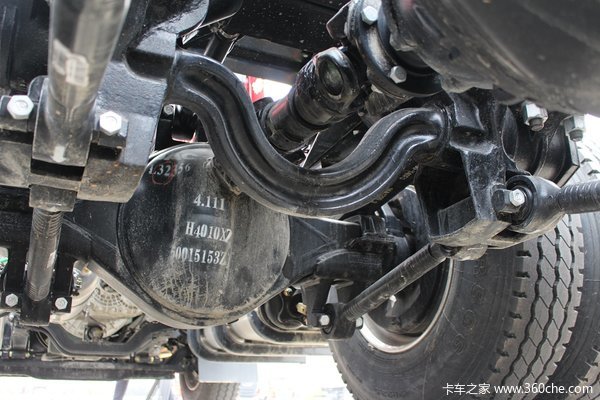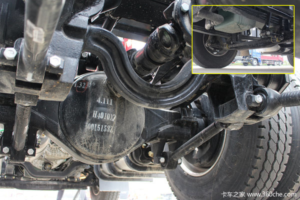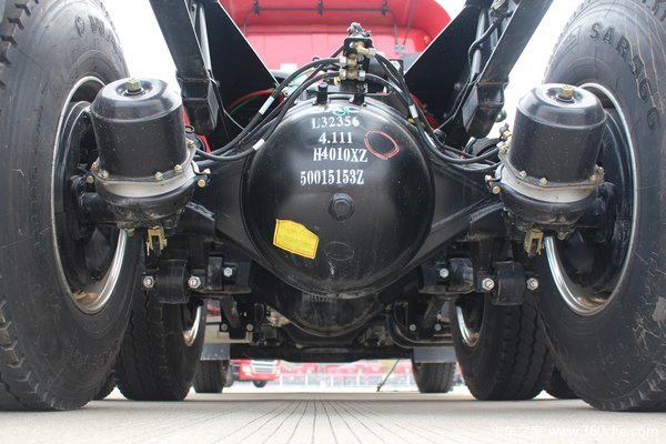 这款车为6x4车型,所以驱动桥是采用安凯435并装驱动桥,配备轴间差速锁,后桥速比为4.111。桥越大传动阻力也会相应的更大,所以对于标载车型来讲435也足够使用。