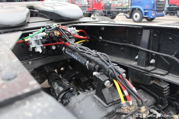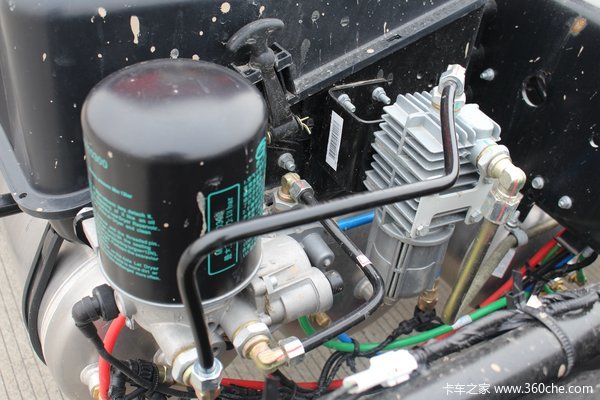 储气筒均为铝合金材质,另外气路系统的管线也是江淮的经典,管路全部采用分色布置,利于检修和排查,并且在走向和布局、包扎固定等方面也都非常的合理。