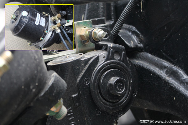 变速箱采用轻量化铝壳,还有一些其他的附件都采用轻量化方案,例如鞍座的固定支架、变速器排选档拉索支架、尾灯架、横梁、板簧吊耳座等。