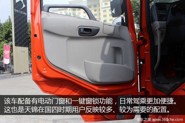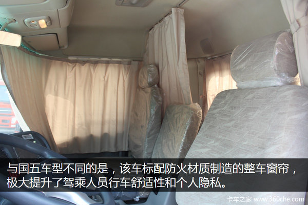 国五升级驾驶室是最为明显的地方,科技上配备了行车导航、记录仪、北斗终端、一键门窗,舒适性上则配置了大照明灯,全车防火窗帘等配置,整体的升级让天锦更加人性化。