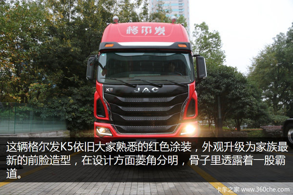 这款格尔发K5最大的亮点就是首次搭载了曼技术的11升440马力的发动机,从而格尔发的动力链更为丰富。此外该车采用了格尔发最新的前脸,驾驶室内部配上了电动后视镜和后视镜加热功能,一键启动功能的出现,也体现了格尔发重卡越来越重视人性化设计。(文/丁美健 图/郝建华)