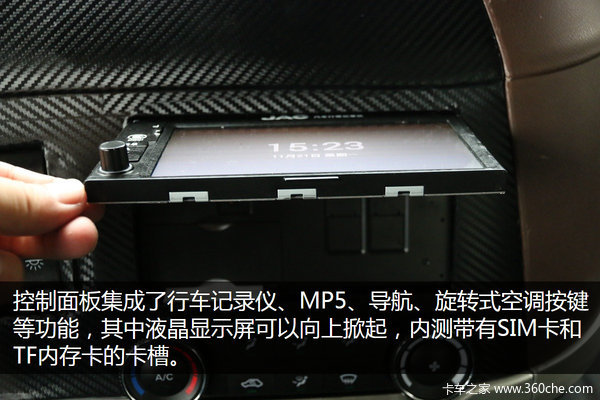 这款格尔发K5最大的亮点就是首次搭载了曼技术的11升440马力的发动机,从而格尔发的动力链更为丰富。此外该车采用了格尔发最新的前脸,驾驶室内部配上了电动后视镜和后视镜加热功能,一键启动功能的出现,也体现了格尔发重卡越来越重视人性化设计。(文/丁美健 图/郝建华)