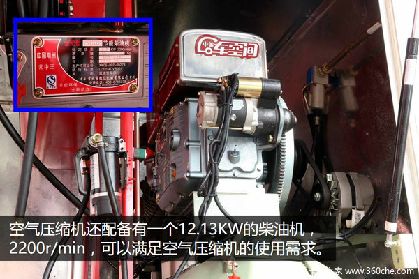 这款车经过改造后有很多的储物空间,车厢前方顶部在空压机的上方设计有一个大型储物箱,充分利用了车内的有效空间。高度也刚好适应成年人的身高,拿取东西都比较方便。