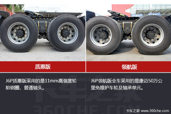 动力方面,两台车均采用了解放长换油发动机,匹配解放12档变速箱,不同的是质惠版采用了轻量化的半铝壳变速箱。
