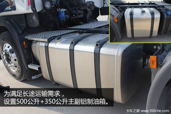 为满足长途运输油耗大的需求,斯堪尼亚G480贴心的设置了710公升和390公升两个铝制油箱,降低驾驶员途中加油次数,提高运输效率。配备斯堪尼亚油水分离器,柴油滤杯加热。